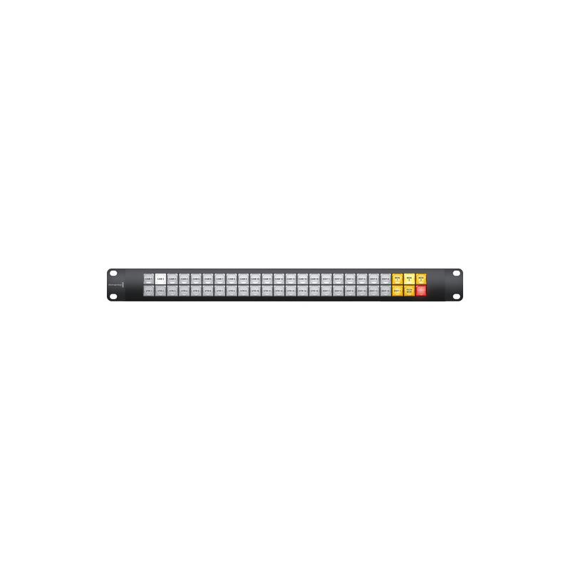O Blackmagic Videohub Smart Control Pro é um painel de controle de 1U para roteadores da linha Videohub, oferecendo 48 botões programáveis com iluminação RGB. Permite a comutação rápida de sinais de vídeo com um único toque, ideal para ambientes de produção ao vivo que exigem agilidade e precisão. Suporta até 10 macros configuráveis, possibilitando comandos complexos com facilidade.