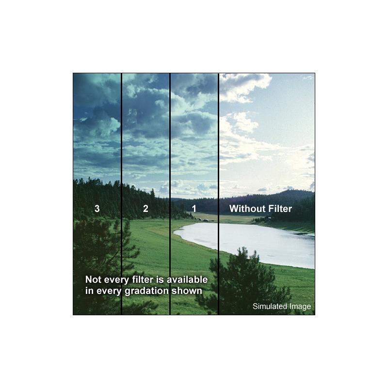Este filtro possui uma densidade de cor 2, oferecendo uma tonalidade azul-esverdeada moderada para realçar áreas específicas da imagem.