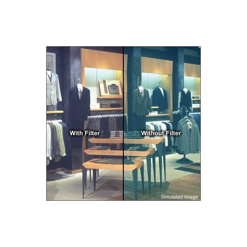 O filtro corrige a tonalidade esverdeada que aparece ao fotografar com filme diurno sob iluminação fluorescente, proporcionando tons de pele agradáveis e cores realistas.