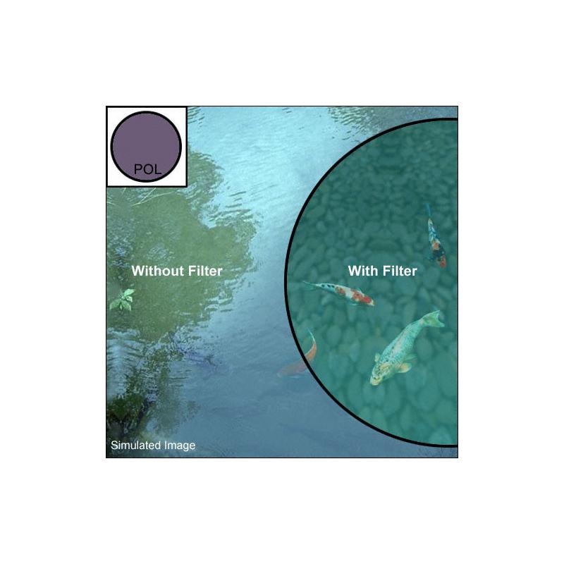 O filtro oferece uma redução de exposição entre 1,2 e 1,5 stops, dependendo da rotação e orientação em relação à luz.