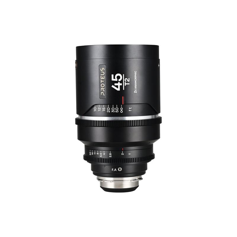 A Lente Anamórfica Laowa Proteus Flex 2× 45 mm T2 proporciona uma estética cinematográfica marcante com compressão real de 2×, bokeh ovalado e flares impactantes. Projetada para sensores Super 35, pode ser usada com adaptador 1.4× para alcançar cobertura full-frame. Sua abertura vai de T2 a T22, com dez lâminas que garantem transições suaves de foco e controle refinado da profundidade de campo. O corpo da lente tem 182 mm de comprimento, diâmetro frontal de 114 mm e pesa aproximadamente 2,4 kg, combinando robustez e equilíbrio ideal para uso em produções profissionais.