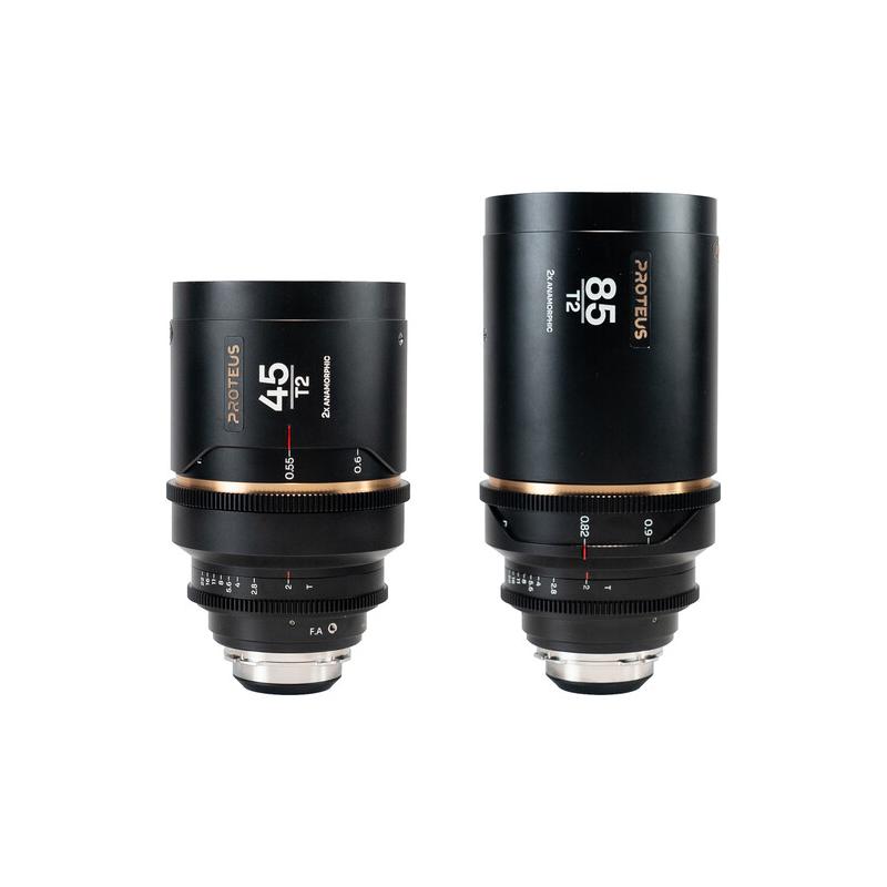 A Laowa Proteus 2x 45 + 85 mm T2.9 Anamorphic com montagem PL e adaptador EF, marcação em pés e flare âmbar oferece experiência cinematográfica avançada para sensores Super 35+. Com fator de compressão 2x, abertura constante T2.9, diafragma de 11 lâminas e foco mínimo de 90 cm, proporciona bokeh oval, flares quentes e precisão de imagem em produções 4K–7K