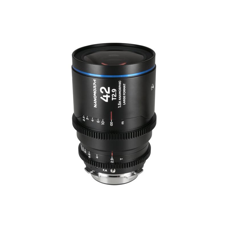 A lente Venus Optics Laowa Nanomorph LF 42 mm T2.9 1.5× Prata é uma objetiva anamórfica de foco manual, projetada para produções cinematográficas com sensores full‑frame e formatos large format, entregando proporção visual de até 2.66:1 após de‑squeeze em sensor 16:9. Cobre além do formato full‑frame, com diâmetro de imagem aproximado de 44,7 mm.